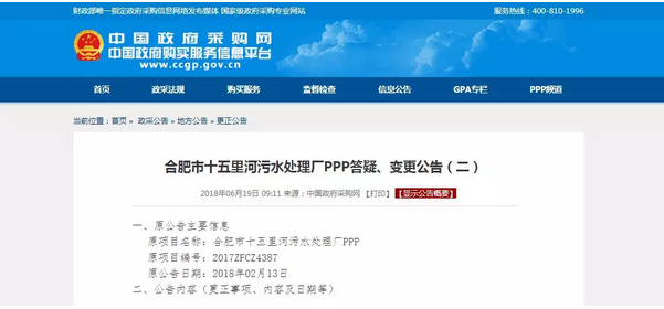 近日,备受关注的合肥市十五里河污水处理厂、合肥市陶冲污水处理厂两大PPP项目同时发布答疑、变更公告,将开标时间(投标截止时间)变更为2018年7月10日9:30。距离原定开标时间…